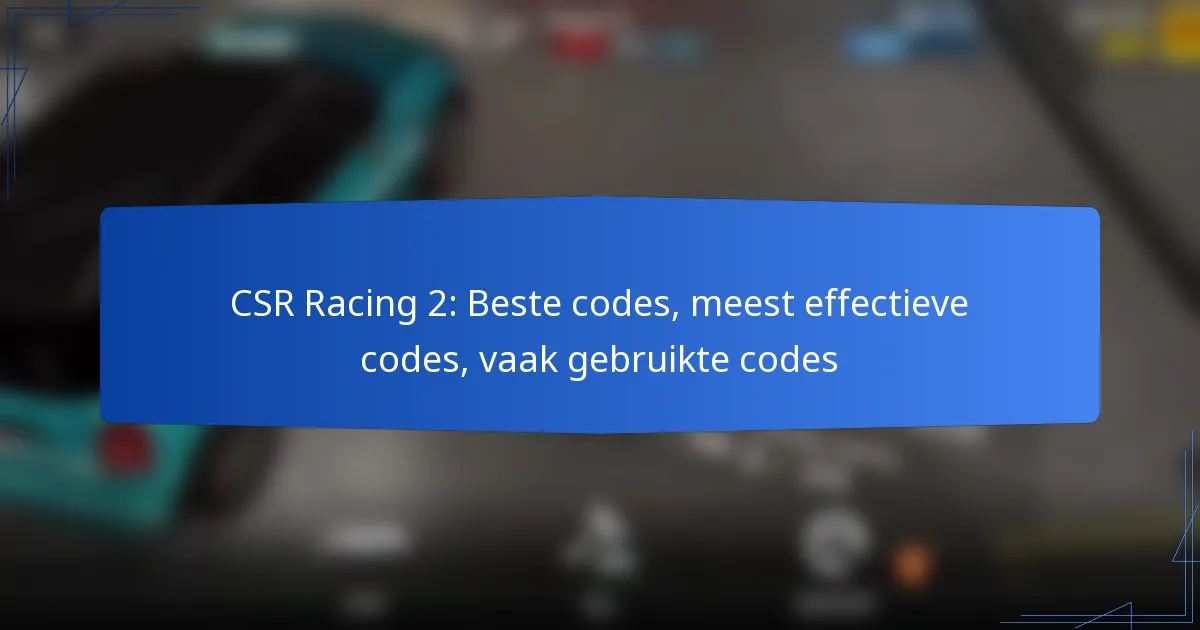 Welke CSR Racing 2 codes worden vaak gebruikt?